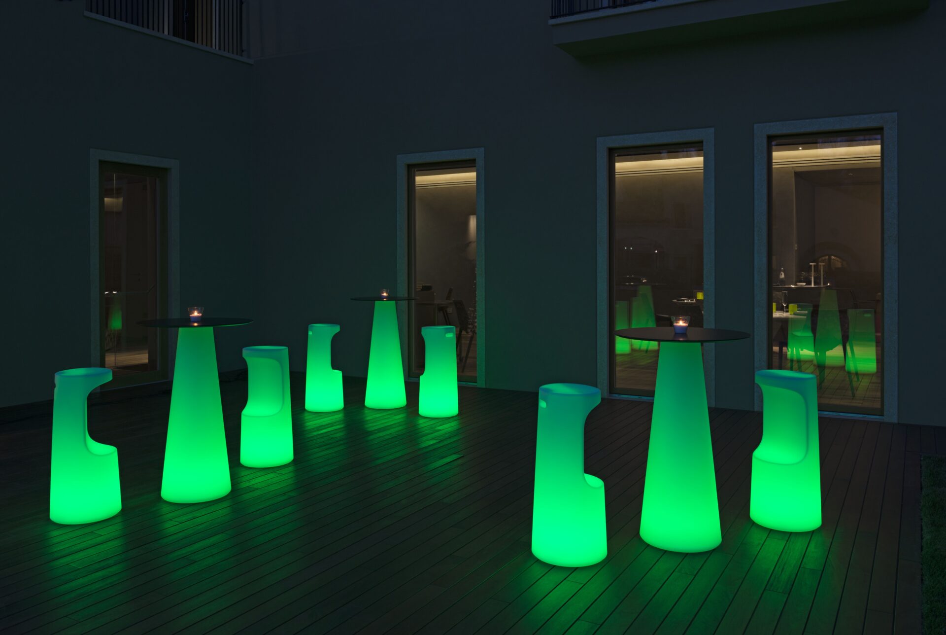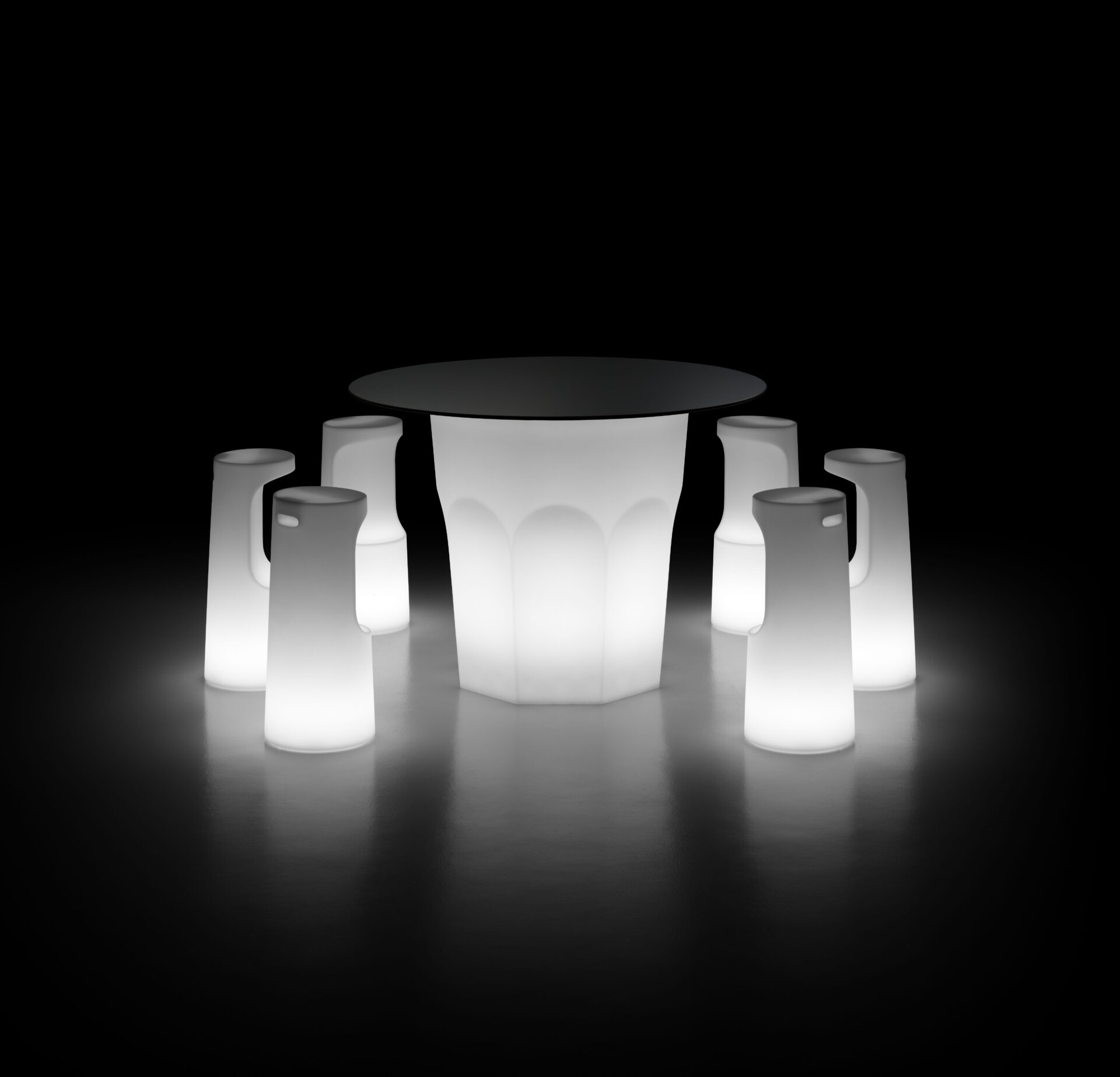 Taboret o wyrazistych liniach, przerwanych wnęką pełniącą funkcję podnóżka, co przywodzi na myśl ścinanie pnia drzewa, po szwedzku „Fura”. Uchwyt z tyłu ułatwia przenoszenie. Stołek jest dopasowany do „stołu Fura”. W wersji świecącej jest wszechstronna i dopasowuje się do każdego stylu i gustu, dzięki zasilanemu bateryjnie zestawowi oświetlenia LED, który eliminuje konieczność stosowania przewodów zasilających i sprawia, że każdy element jest niezależny.