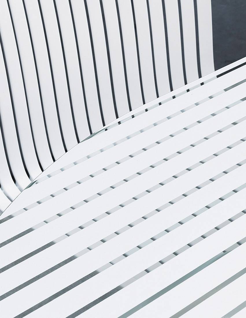 Jednoczęściowe siedzisko bez podłokietników z żywicy z włókna szklanego o przyjemnym, relaksującym kształcie. Zakrzywione, lakierowane aluminiowe nogi nawiązujące do naturalnych kształtów wodnych kwiatów.