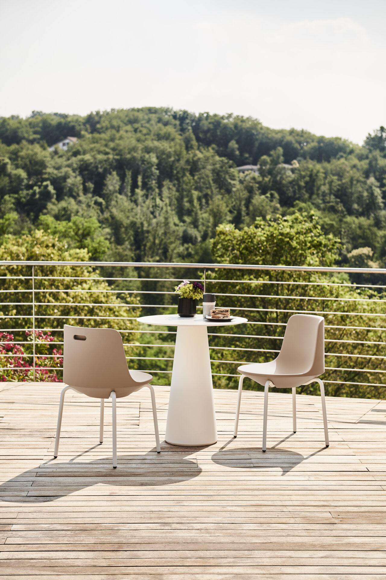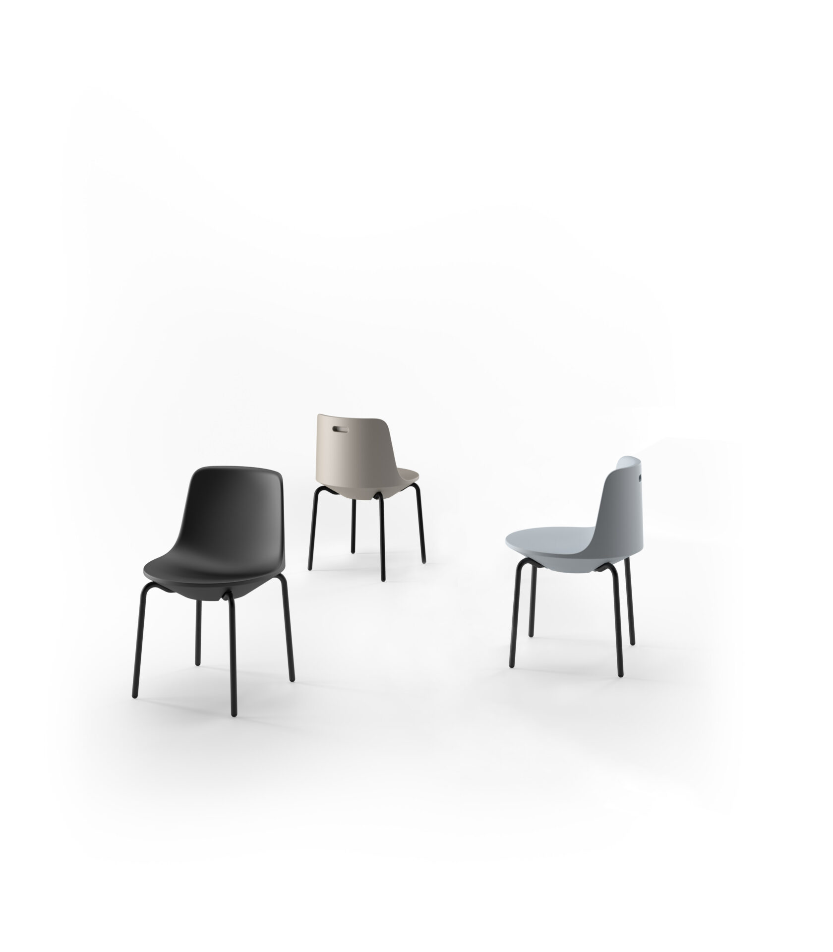 Bardzo wygodne krzesło o czystych liniach, ale o silnej osobowości. Dostępne z nogami z aluminiową ramą, malowaną na biało lub czarno. Nogi są połączone ze skorupą z PE formowanego rotacyjnie i nadają zarówno elegancji, jak i nowoczesności, dzięki czemu ten element jest stylistycznie uniwersalny dla różnych typów środowisk. Nadaje się do użytku zarówno wewnątrz, jak i na zewnątrz.