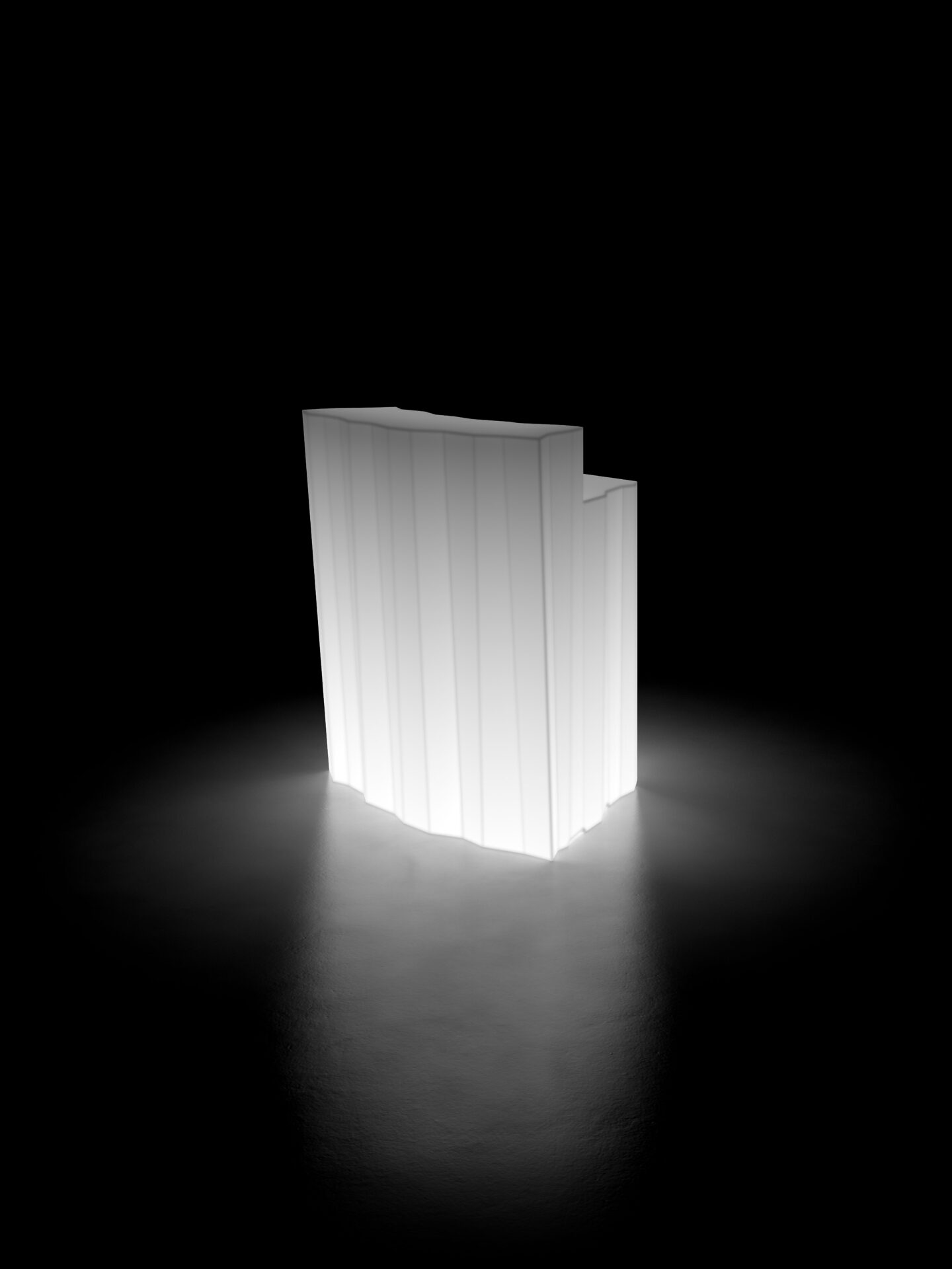 Element narożny, który można wykorzystać samodzielnie lub w parze, tworząc konsole lub recepcje. „Frozen Corner” jest łatwy do przenoszenia i odporny na uderzenia. Może mieć do 5 półek, blat roboczy i posiada 2 wnęki. Dopasowany do elementu liniowego „Frozen Corner” można wykorzystać do tworzenia lad barowych lub recepcyjnych. Jest przeznaczony do pomieszczenia 1 zestawu oświetlenia standardowego lub RGB. Po sparowaniu tworzy fascynujące, świetliste obszary odbioru. Oświetlenie nie jest wliczonę w cenę.