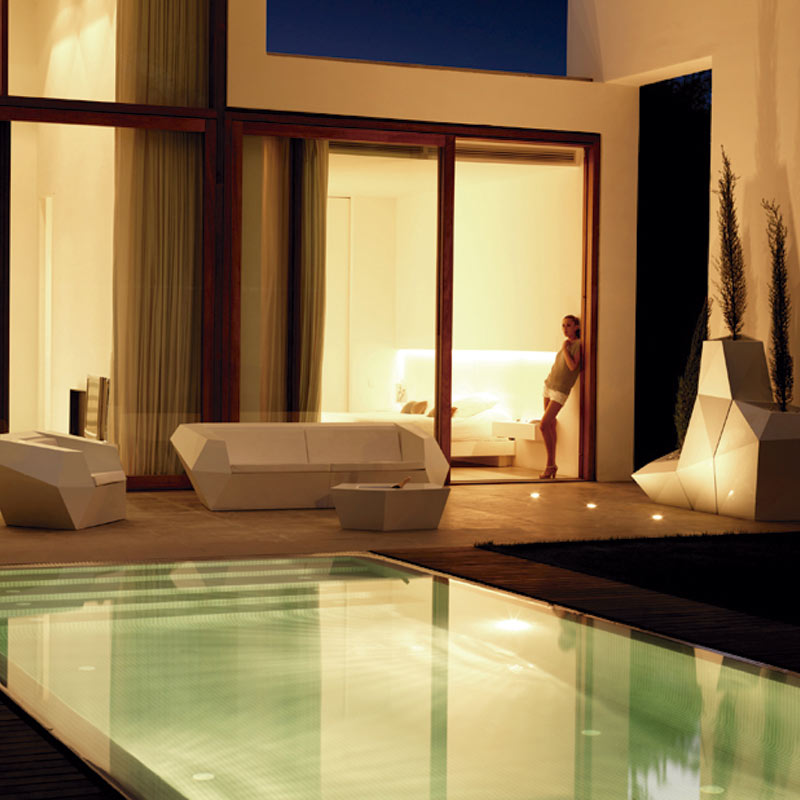 Faz to modułowa kolekcja mebli ogrodowych i donic zaprojektowana przez Ramóna Esteve dla Vondom. Jest architektem harmonii, spokoju, ponadczasowości i uniwersalności. Stworzył mineralne i wyraziste kształty, które sprawiają, że Faz jest projektem, który wpisuje się w kontekst domów i instalacji. Atmosfera, otaczająca w wyniku błogiego połączenia materiału i oświetlenia, tak aby jedynym doznaniem było jego połączenie.