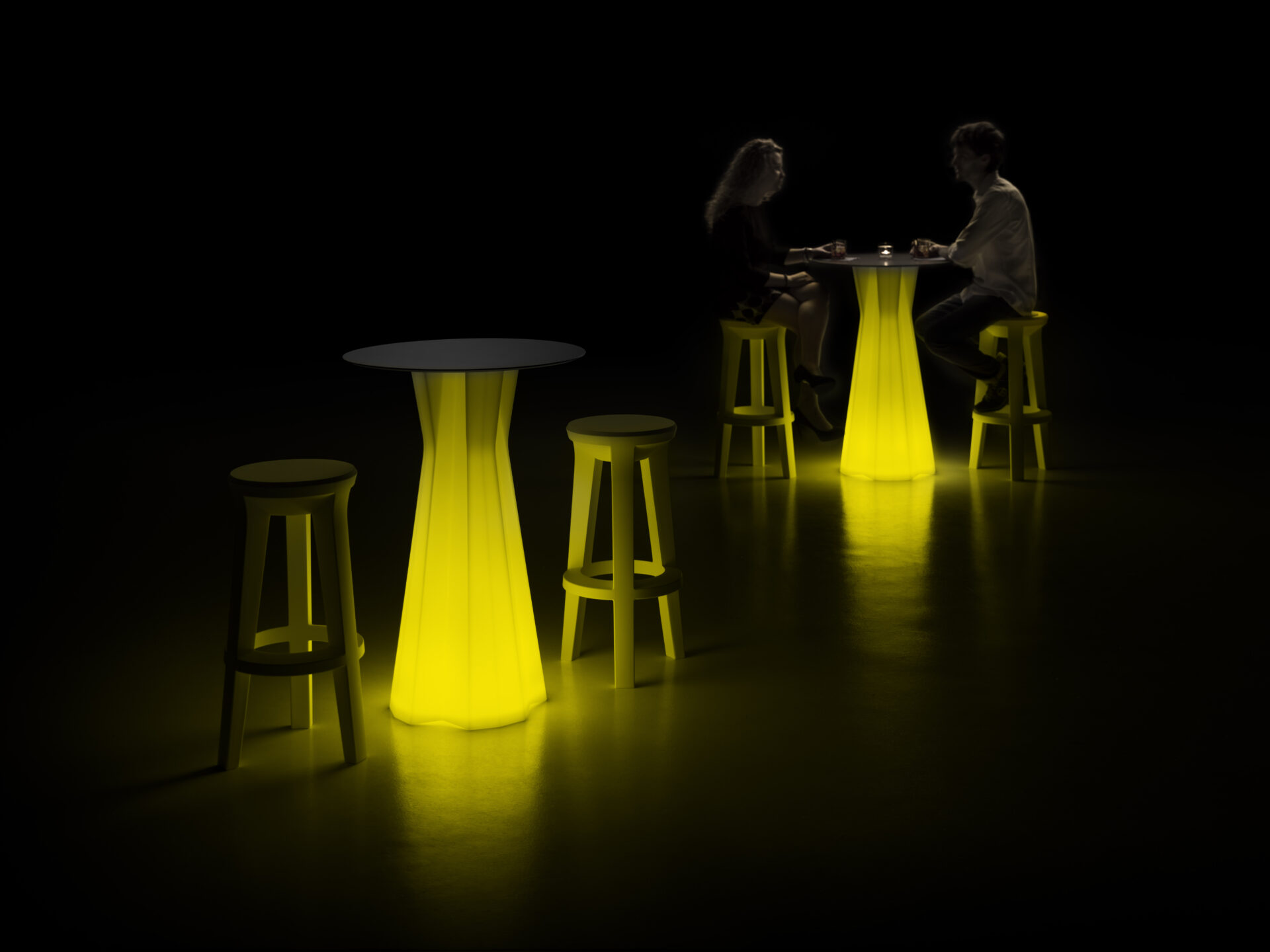 Łącząc kilka „Frozen Table” z kwadratowym blatem, możesz stworzyć spektakularne stoły bufetowe i liczne rozwiązania spełniające wymagania najpopularniejszych przestrzeni publicznych. Dostępna również wersja świetlna.