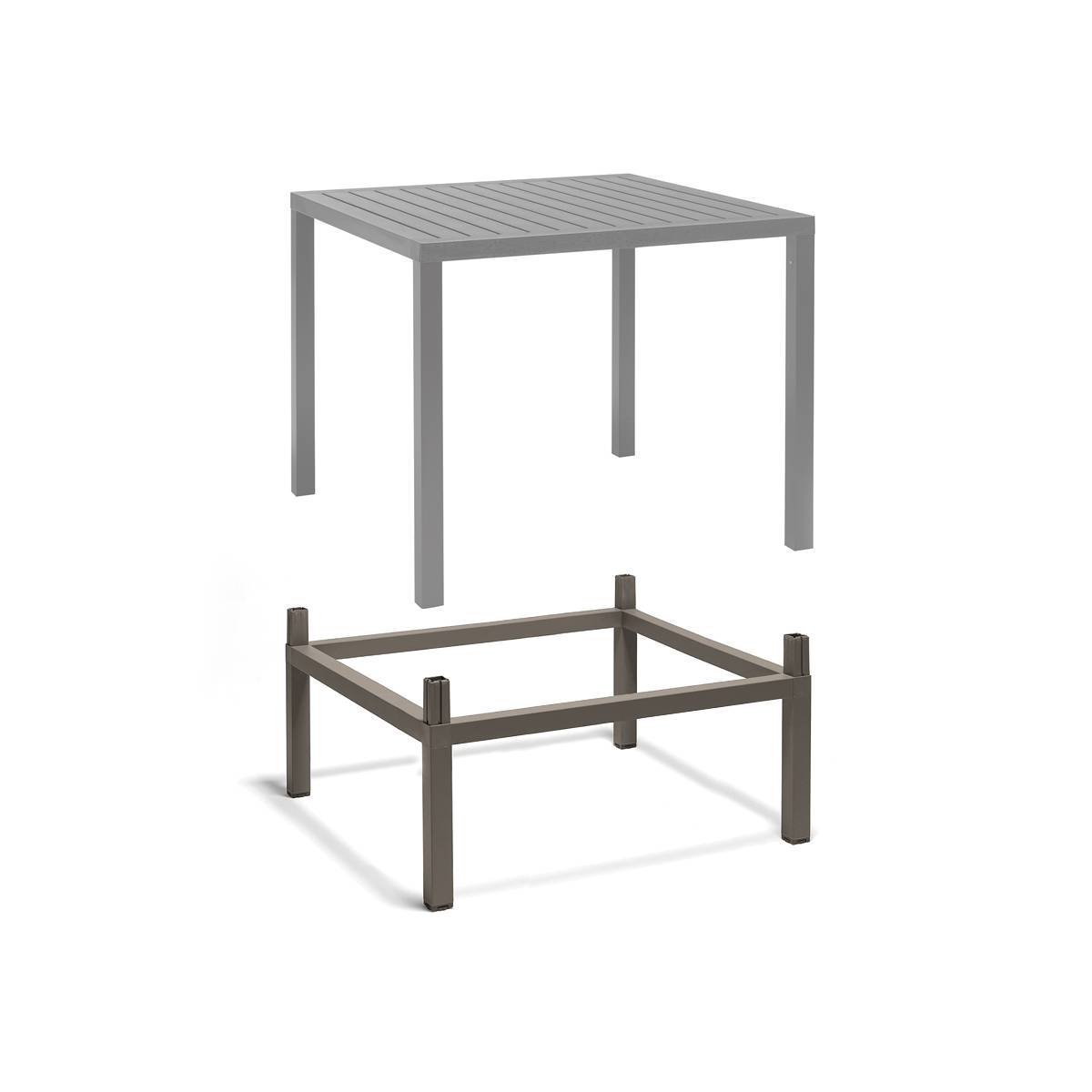 System podnoszenia wysokości (od 75,5 cm do 107 cm) dla stołu Cube 80. Materiał: powlekane aluminium. Łatwy montaż i niewidoczne łączenie. Regulowana wysokość nóżek.